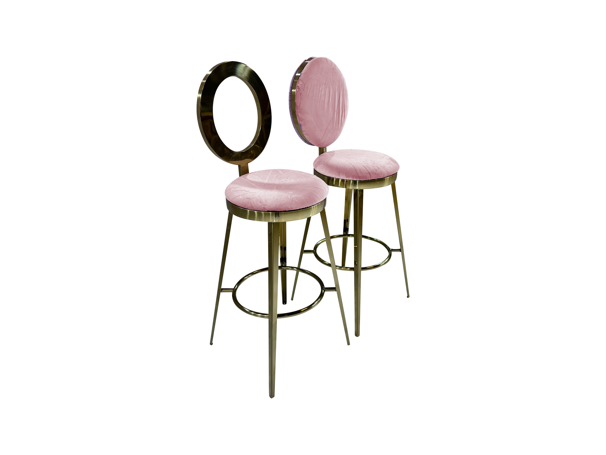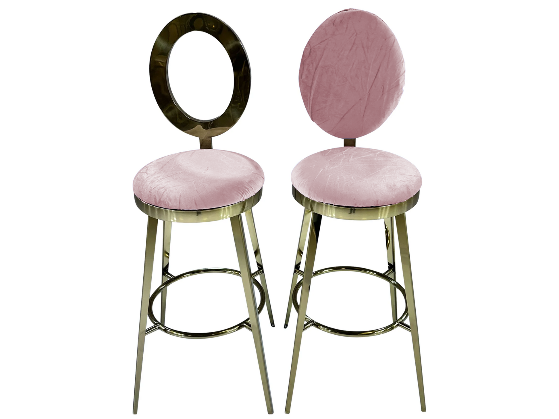 Elevate your party style with the gorgeous Bellagio Barstool. This barstool is a modern twist on the classic "O" back barstool. Choose from either the classic blush velvet cushion or gorgeous open gold frame option to create a look that's perfect for your event. By customizing your barstool, you're ensuring that your furniture matches your style. Whether you're hosting a classic black tie affair or something more modern and unique, the Bellagio Barstool is the perfect piece!